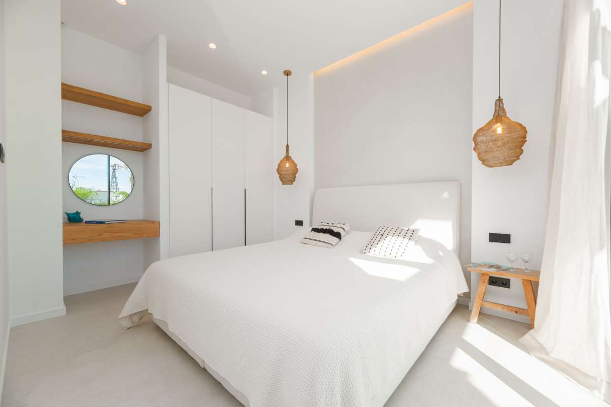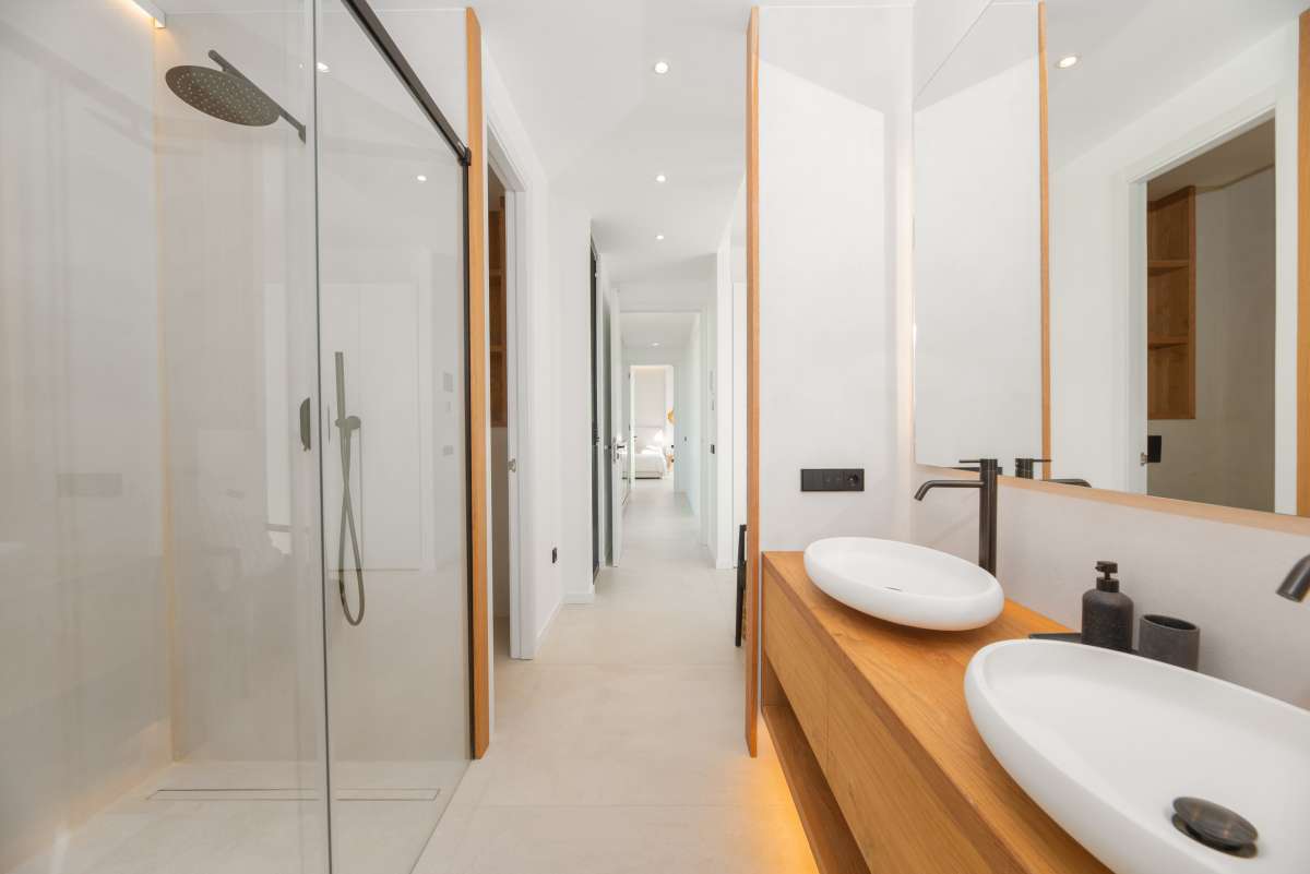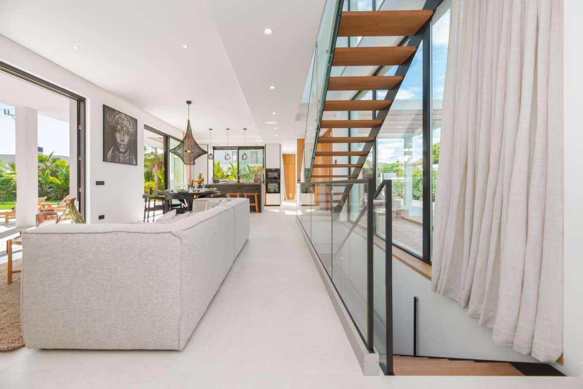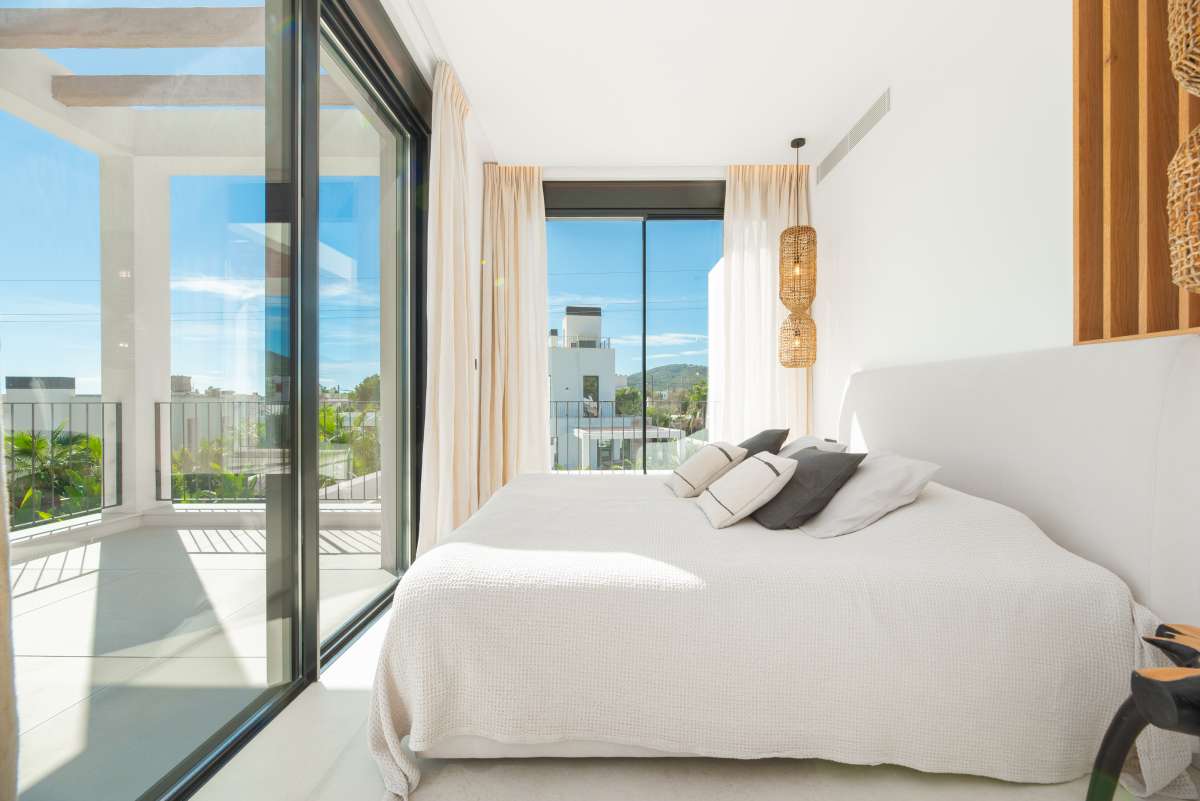 The surroundingsThis stylish villa is located in Sa Carroca, a popular location in the south of Ibiza. The area is known for its excellent accessibility and quiet, authentic atmosphere. From the villa you are within a six to eight minute drive of the beautiful beaches of Playa d’en Bossa or Ses Salines, where the crystal-clear waters and contemporary beach clubs can provide relaxation. The same number of car minutes also puts you at Ibiza’s airport. The lively center of Ibiza Town, full of boutiques, restaurants and cultural hotspots, is just fifteen minutes away. Sa Carroca itself offers a charming selection of local eateries, supermarkets and a weekly market, so you never have to drive far for your daily needs. The villa’s location also offers spectacular views of both the shimmering sea and the stunning hills, putting all the best Ibiza has to offer at your fingertips.The villaThis modern yet charming villa has a constructed area of 284m2 on a generous 1080m2 plot and has 4 bedrooms, 3 bathrooms and 1 guest toilet. The house combines contemporary style with rustic Ibiza elements, creating a harmonious balance between luxury and a comfortable atmosphere. The interior is bright and open, with extensive use of high-quality materials such as light woods and white stucco, giving the villa a serene feel. Upon entering, you are greeted by an impressive open living room with a beautiful view of the garden, with the pool as its centerpiece. The fully equipped kitchen, featuring a large cooking island, is perfect for culinary enthusiasts. All built-in appliances are of the highest quality, and the kitchen is outfitted with all the desirable conveniences. This room flows seamlessly into the grand dining area and adjoining living room. The living room features a spacious TV corner, ideal for relaxing with family and friends. This home is fully equipped as a smart home: all essential functions, such as lighting, air conditioning, underfloor heating, and security systems, can be controlled via your smartphone or tablet. On the first floor, there is also a laundry room, a separate technical room, and a guest toilet. One of the master suites is located on this floor and features an ensuite bathroom and access to 2 private terraces overlooking the pool and hills. The second floor offers another spacious master bedroom, also with an ensuite bathroom, and 2 additional bedrooms that share a modern bathroom. From the bright, open hallway, you have breathtaking views of the surrounding flora and fauna. All bedrooms on this floor have direct access to a large terrace overlooking the sea, providing a sense of space and freedom. Attention to detail can be found throughout this villa, with a subtle combination of modern conveniences and a pleasant Mediterranean atmosphere.The outdoor spacesThe outdoor area of this villa is, without a doubt, its showpiece. It is stylish, comfortable, and functionally furnished. At the center of the garden is a large saltwater pool, surrounded by comfortable loungers where you can fully relax after a refreshing dip. Next to the pool is a luxurious outdoor kitchen with a barbecue and bar, ideal for extended dining under the open pergola. The outdoor area has been meticulously designed, featuring Mediterranean plants such as olive trees and palms that surround the villa, creating a wonderfully peaceful atmosphere both in the sun and shade. The villa also includes a fully equipped basement, which houses a technical room for the pool and a large family room that can be set up as a TV room or gym, depending on your needs. A fully equipped outdoor bathroom near the pool adds extra comfort and convenience. Finally, there is parking for at least three cars, including a charging station for electric vehicles. This villa is the perfect home for those seeking tranquility, luxury, and comfort in beautiful Ibiza.